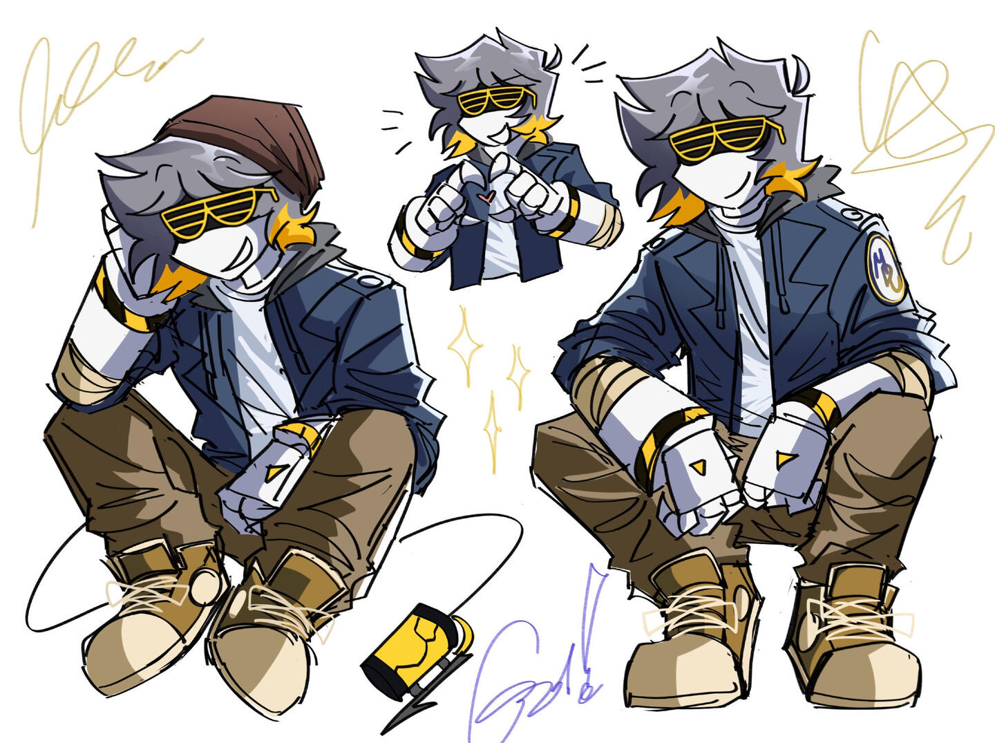 • 2-4 drawings of a character/OC in different poses.